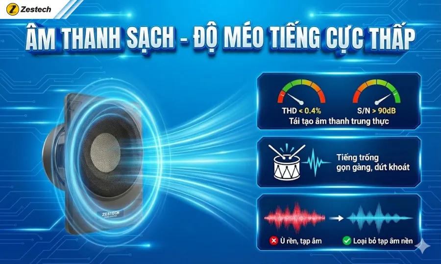3.2. Âm thanh sạch, độ méo tiếng cực thấp (THD < 0.4%)
