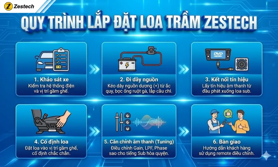 4. Quy trình lắp đặt Loa Trầm Zestech chuẩn kỹ thuật