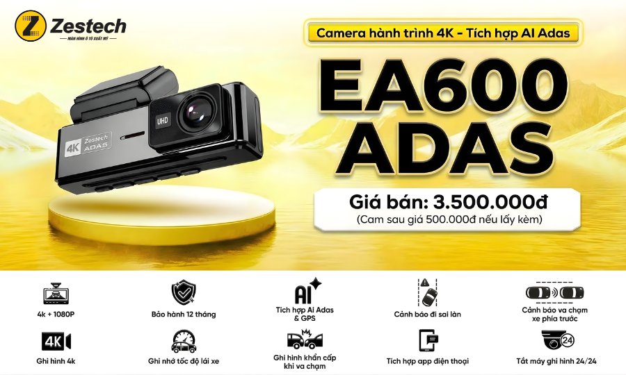 | Camera hành trình Zestech EA600 ADAS | 3.500.000 VNĐ (Camera sau giá 500.000 VNĐ nếu lấy kèm) |
