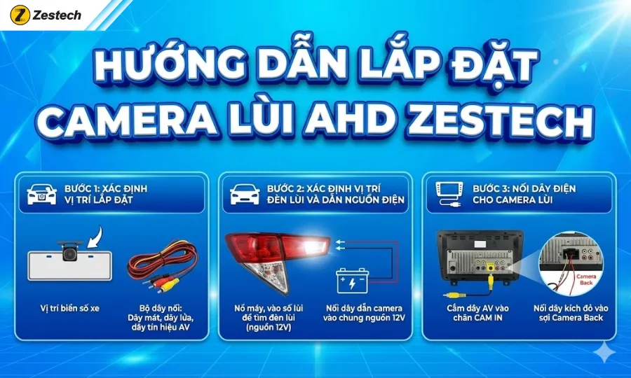 Hướng dẫn lắp đặt Camera lùi AHD Zestech 1080p
