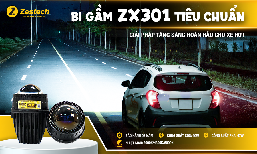 Đèn Bi Gầm Zestech ZX301 Tiêu Chuẩn là sản phẩm thuộc hệ sinh thái ánh sáng của Zestech – thương hiệu dẫn đầu thị trường phụ kiện ô tô tại Việt Nam với: