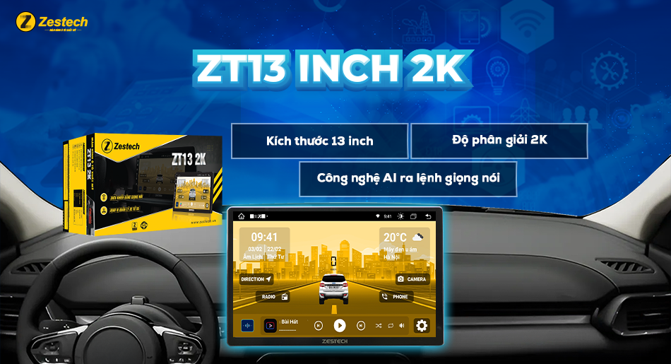 Màn hình Zestech ZT13 inch 2K – siêu phẩm thế hệ mới dành cho những ai yêu thích không gian hiển thị lớn, công nghệ thông minh và trải nghiệm lái xe đỉnh cao.